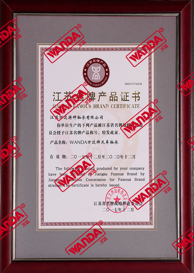 Certificat de produit de marque célèbre du Jiangsu